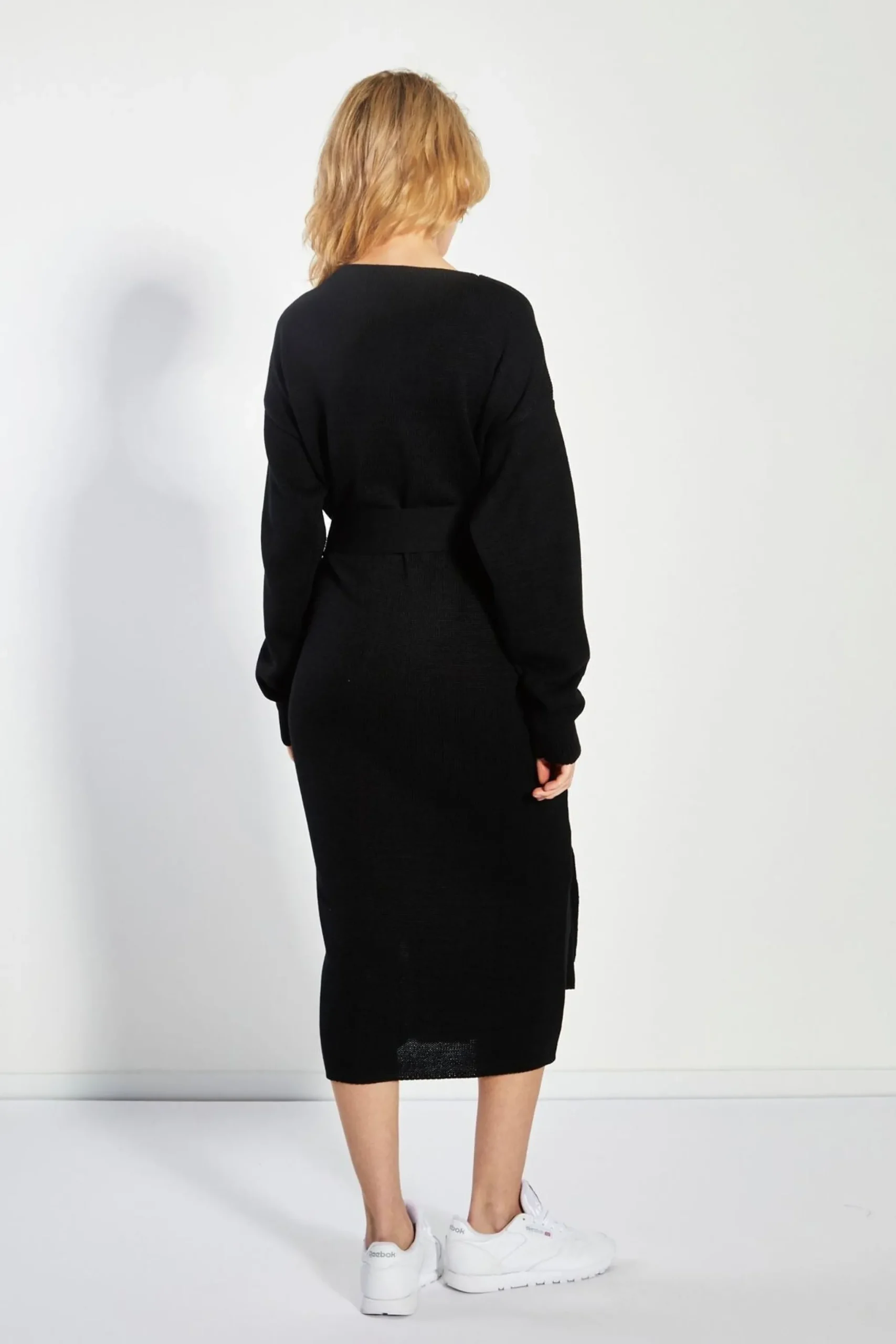 Glamorous Women’s Black Tie-Waist Knitted Midi-Dress. We love this cute dress! A wardrobe must have with midi length, tie waist detail and super comfortable knitted material, so on trend this season. This will be your go to for every occasion this year! Looks great teamed with chunky boots or dressed up with your favourite heels for cocktails with the girls.