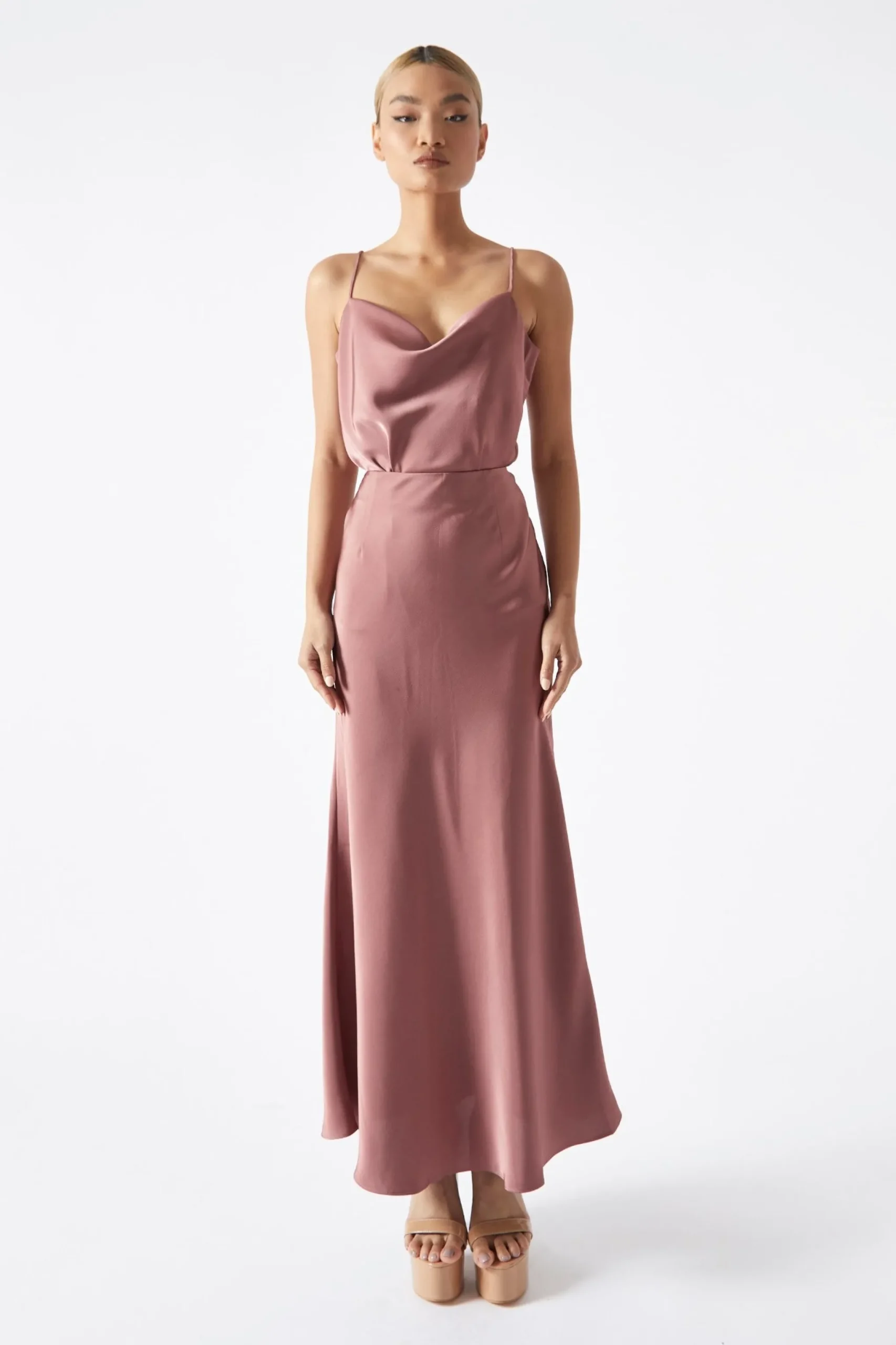 Glamorous Studio Womens Dark-Rose Cowl Neck Top. This staple top is perfect to elevate any look. Featuring a simplistic cowl neck & cami design, this top will be your go to all season. Looks great teamed with matching skirt and your favourite heels for cocktails with the girls.