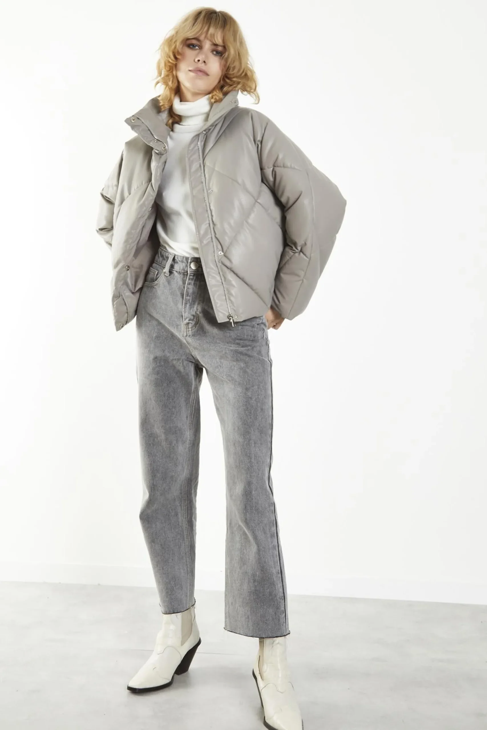 Glamorous Women’s Grey Collared Long Sleeve-Jacket. This grey collared long sleeve puffer jacket is the perfect blend of warmth and style for those chilly days. The soft puffer material provides excellent insulation, keeping you cozy while you go about your day. Featuring both a button front and a zip front, this jacket offers versatility in how you wear it, allowing you to adjust the fit to your liking. The classic collar adds a touch of refinement, making it easy to dress up or down depending on the occasion. Pair it with your favourite jeans and a chunky knit sweater for a casual outing, or throw it over a sleek dress for a night out. The neutral grey colour makes it easy to mix and match with various outfits, ensuring that you’ll reach for this jacket time and time again. With its practical design and stylish details, this puffer jacket is an essential addition to your winter wardrobe, ready to keep you warm without sacrificing your sense of style.