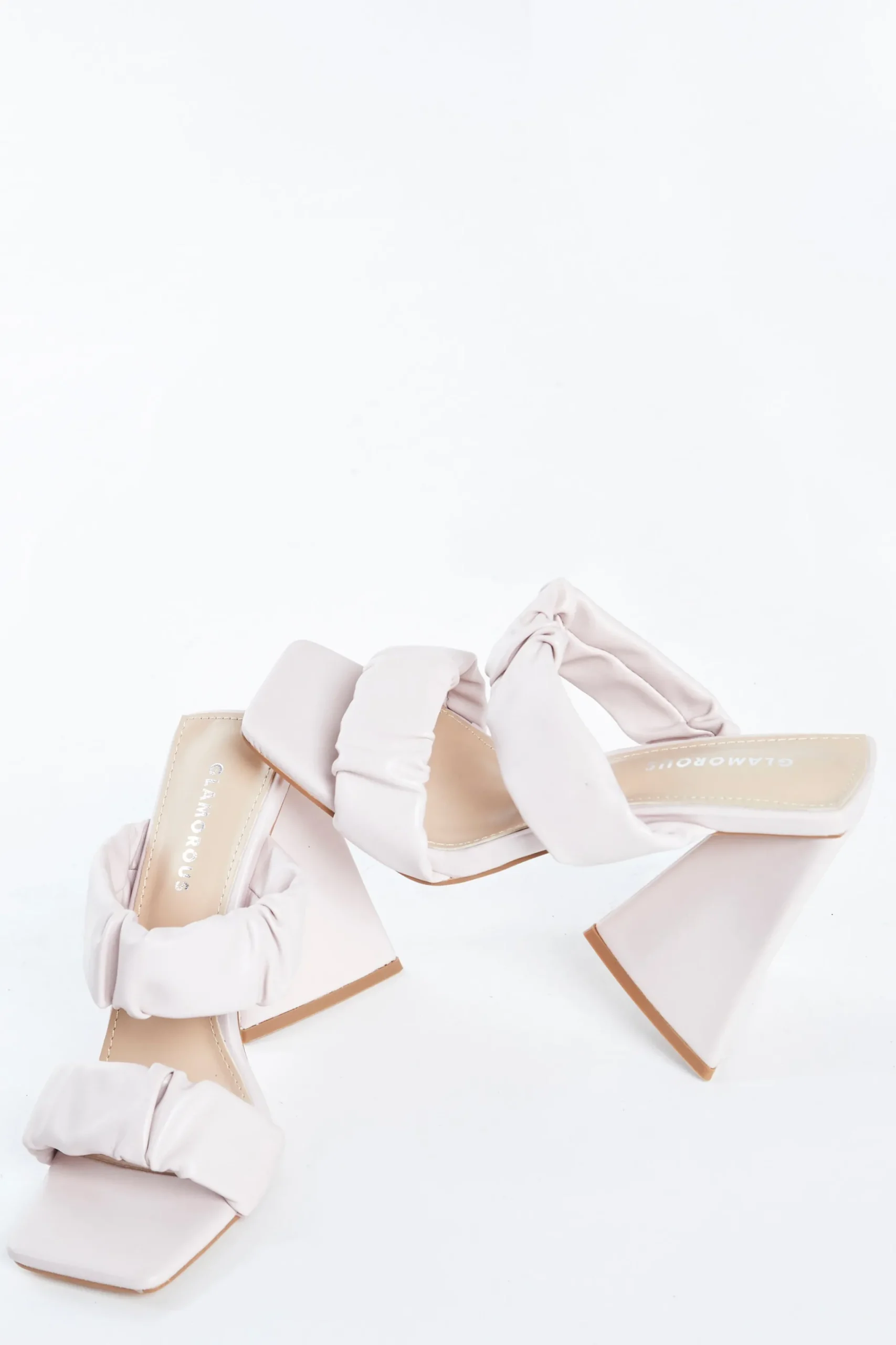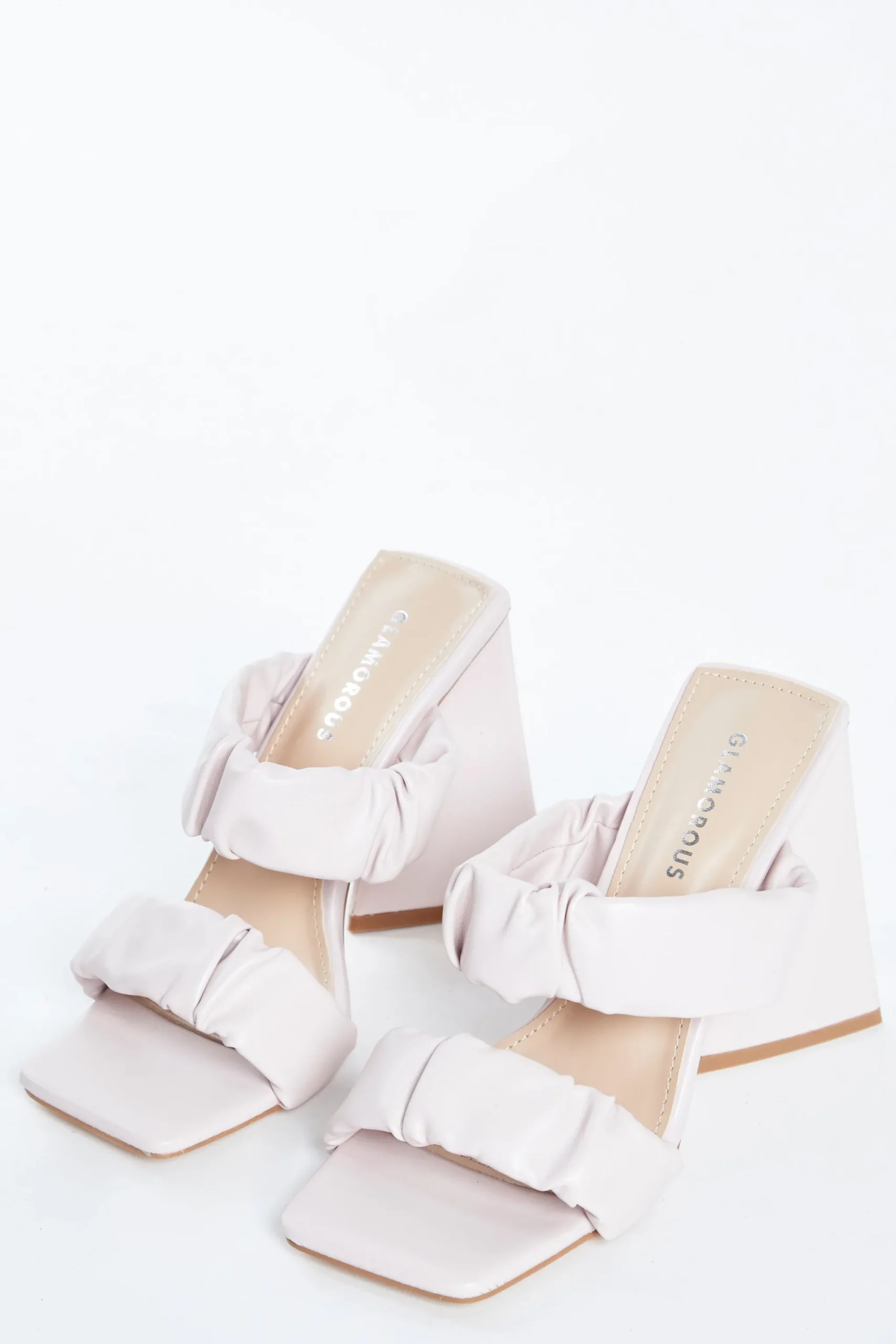 Glamorous Womens Pink Flared Block Heel Mules. Designed to make a statement, these pretty pink mules with on-trend flared heel are sure to elevate every outfit! Featuring ruched detail straps and square toe, looks great teamed with your favourite jeans and a cute top for date night!