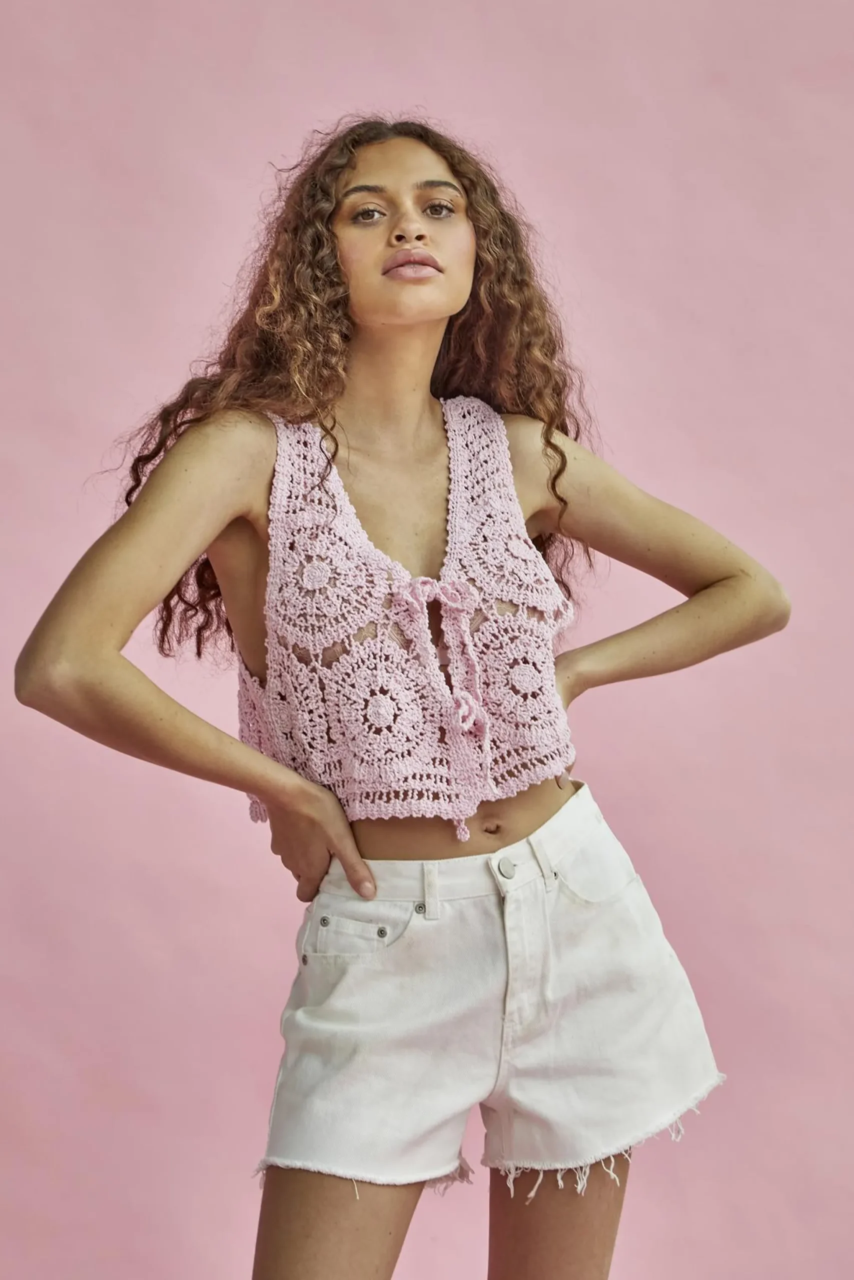 Glamorous Women’s Pink Broderie Crop-Top. Add a fresh and breezy vibe to your wardrobe with this charming broderie crop top. The intricate broderie detailing gives it a delicate, textured look, while the vest-style cut keeps things casual and easy to wear. The flattering V-neckline frames your collarbone beautifully, adding a touch of femininity to the design. A tie-front detail not only adds a playful twist but also allows you to adjust the fit to suit your style and comfort. This crop top is perfect for sunny days, pairing effortlessly with high-waisted jeans or flowy skirts for a laid-back yet polished look. For a coordinated outfit, style it with matching pieces for an effortlessly chic ensemble. The lightweight fabric makes it ideal for warm weather, keeping you cool and comfortable all day long. Whether you’re heading to a picnic, strolling through the city, or lounging with friends, this top brings a relaxed charm to any occasion. It’s an easy-going piece that’s as versatile as it is stylish, ready to brighten up your everyday outfits with its sweet and playful vibe.