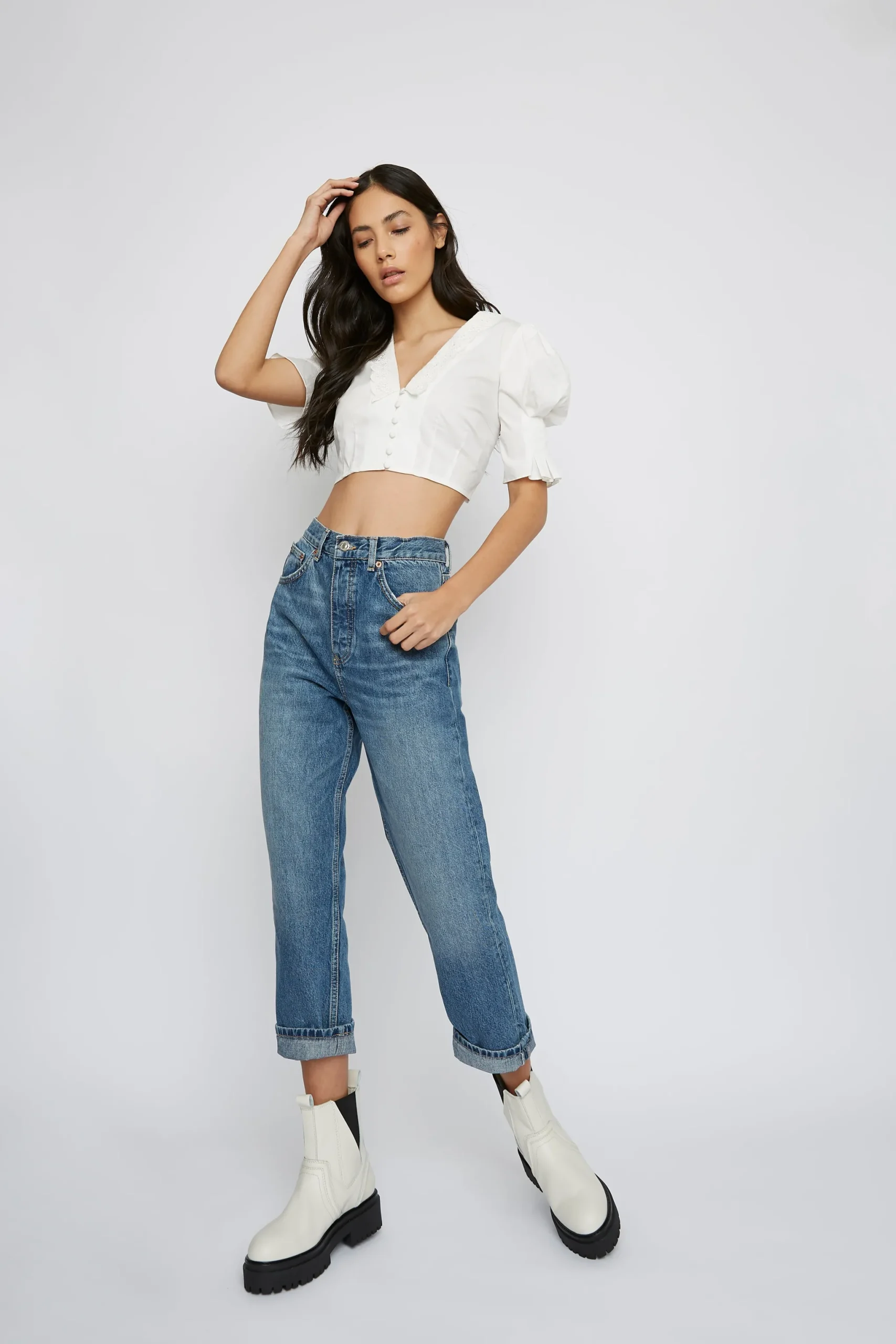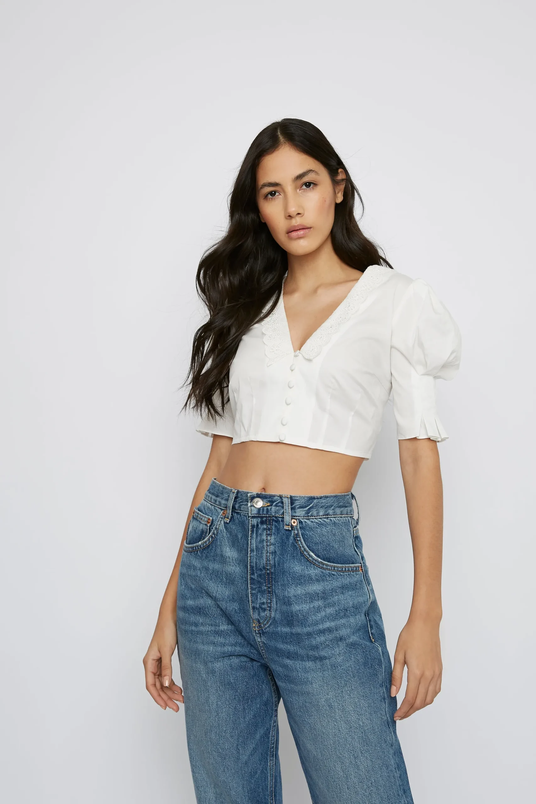 Glamorous Women’s Off-White Button-Down Crop-Top. This charming top brings together timeless elements with a modern twist. The button-front design gives you control over your look, while the delicate lace collar adds a touch of romance and femininity. Pleated puff sleeves bring a playful volume to your shoulders, creating a balanced silhouette. The cropped length hits just right, making it perfect for pairing with high-waisted bottoms. Thanks to its tailored fit, this top hugs your curves in all the right places, ensuring you feel confident and comfortable. The off-white colour is a versatile choice that works well with any outfit. Try it with your favourite jeans for a casual day out, or dress it up with a sleek pencil skirt for a more polished look. This top is your new go-to for effortless style that transitions seamlessly from day to night.