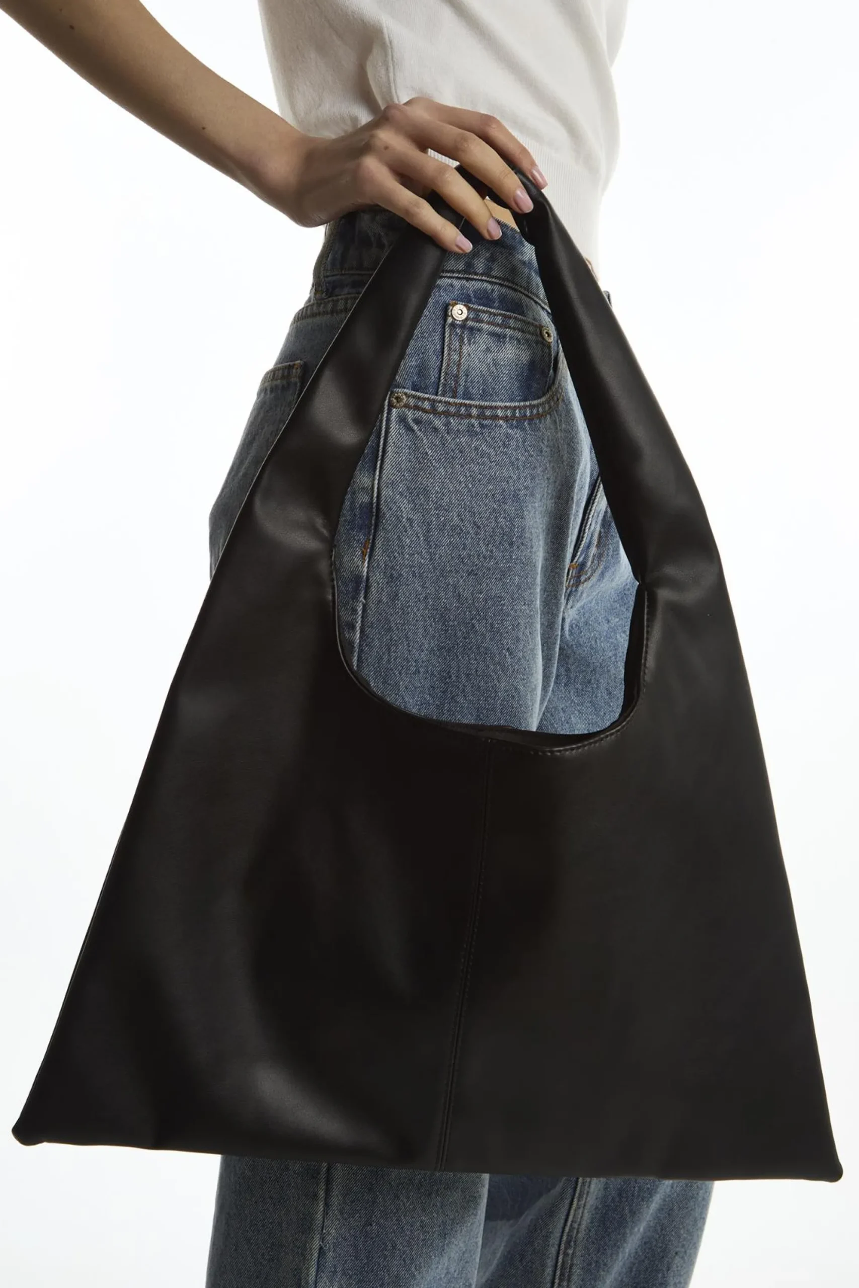 Glamorous Women’s Black Winged Shoulder Tote-Bag. Meet your new go-to accessory: a tote bag that’s anything but ordinary. This eye-catching piece boasts a distinctive winged-shoulder design, adding a touch of architectural flair to your everyday carry. Crafted from durable PU fabric, it’s built to withstand the rigors of daily use while maintaining its sleek appearance. The spacious interior easily accommodates your essentials, from work documents to weekend necessities, making it a versatile companion for various occasions. Its unique shape not only sets it apart visually but also offers practical benefits, allowing for comfortable shoulder wear and easy access to your belongings. The clean lines and modern silhouette of this tote make it a standout addition to any outfit, effortlessly complementing both casual and more polished looks. Functional yet fashionable, this bag is designed for the individual who appreciates a blend of style and practicality in their accessories.