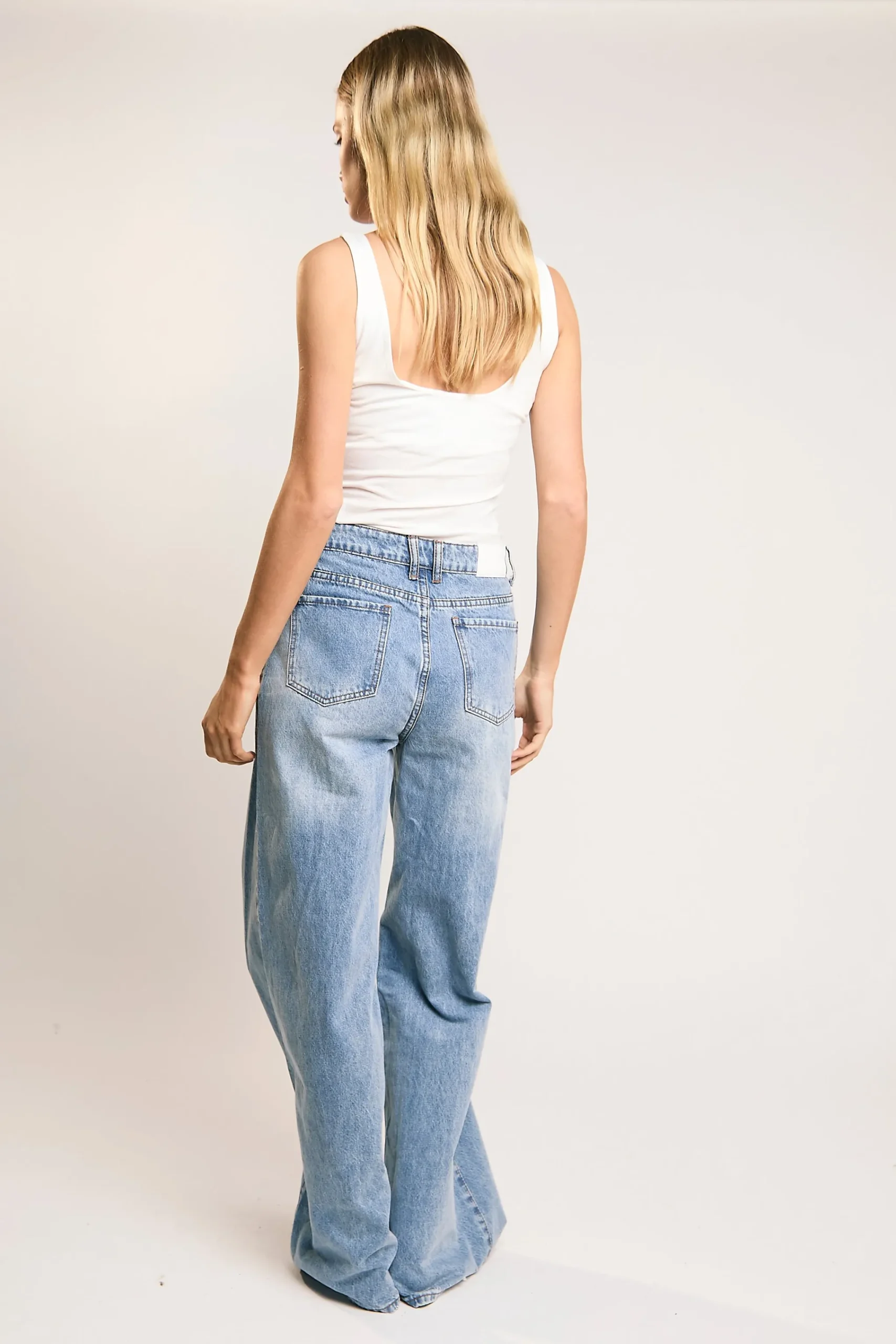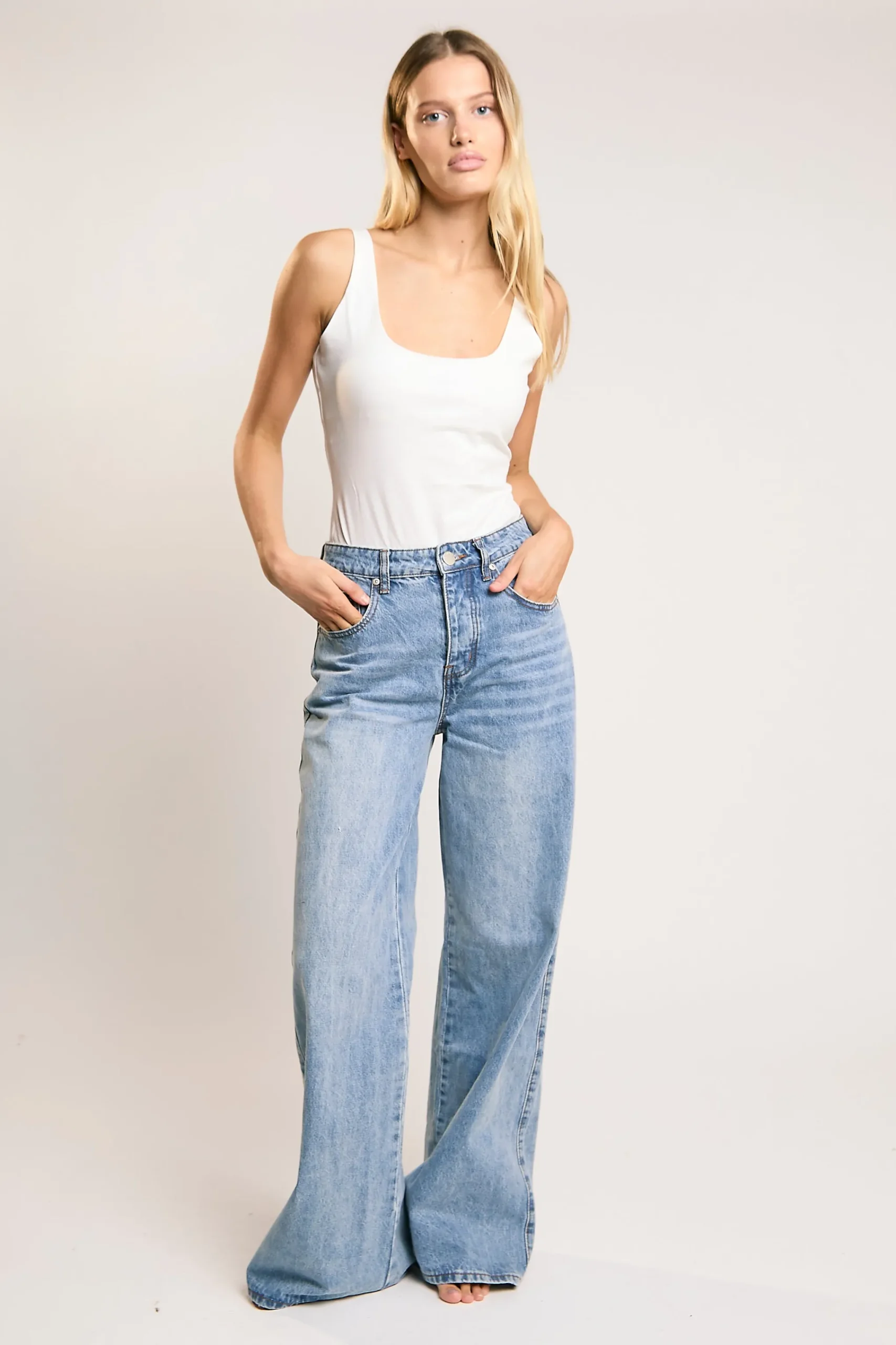Glamorous Womens Mid Stonewash Wide-Leg Jeans. Wide leg jeans are so on trend right now! In a Mid Stonewash colour, throw these jeans on with a cute cropped jumper or statement bodysuit for an instant style win! Perfect for any occasion, you cant go wrong!