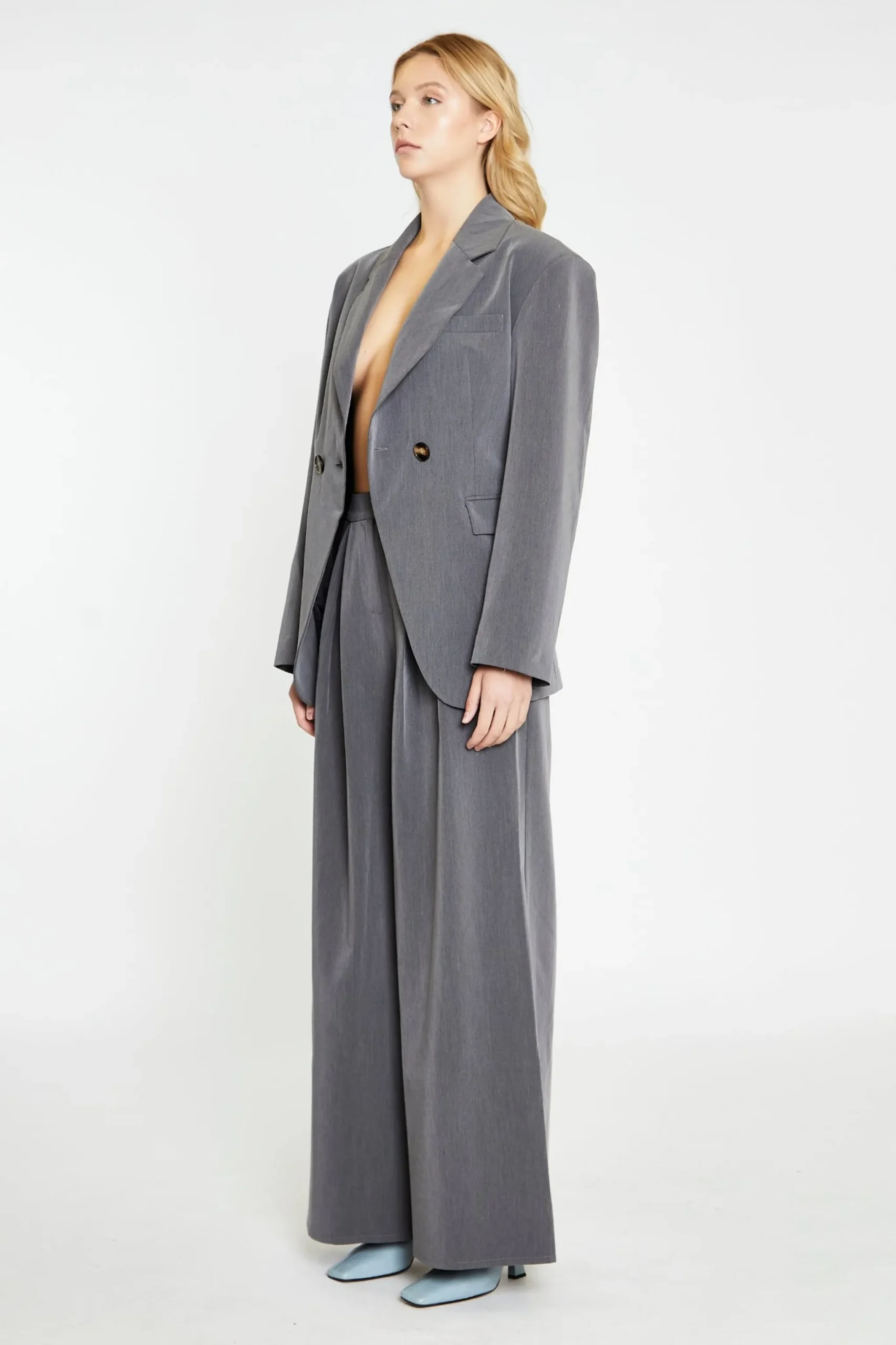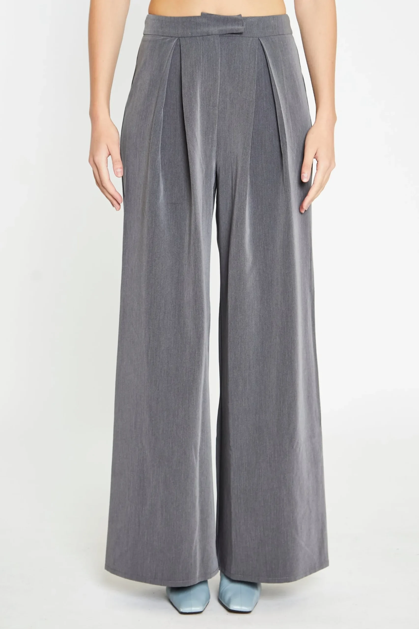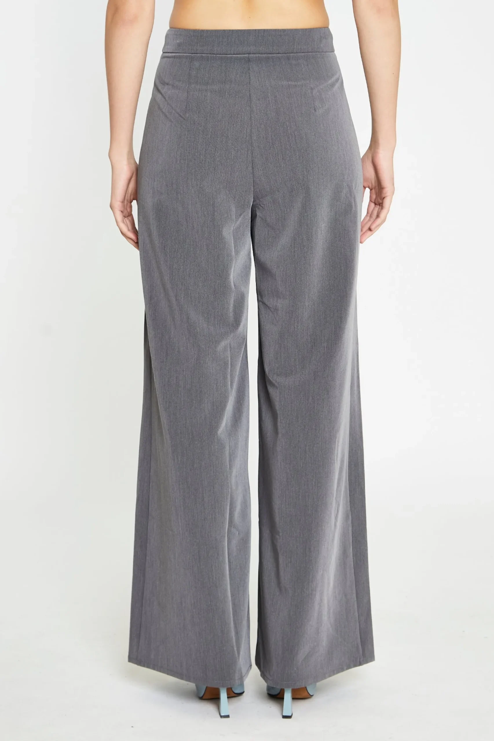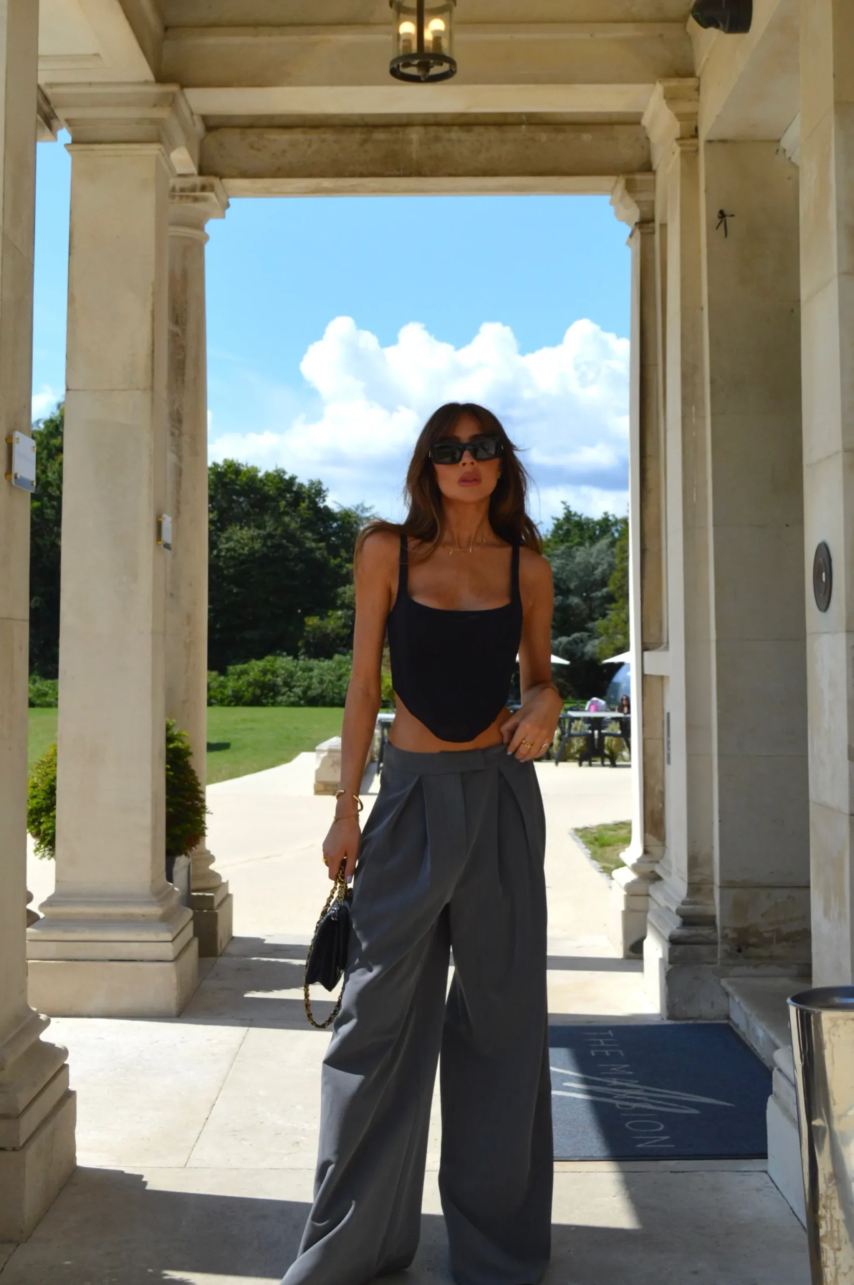 Glamorous Womens Dark-Grey High-Waisted Wide-Leg -Trousers. Walk like a boss in these chic wide leg trousers. With a high waist fit, and front pleat details, these trousers are serious business. Pair with the blazer for a stylish workwear look.