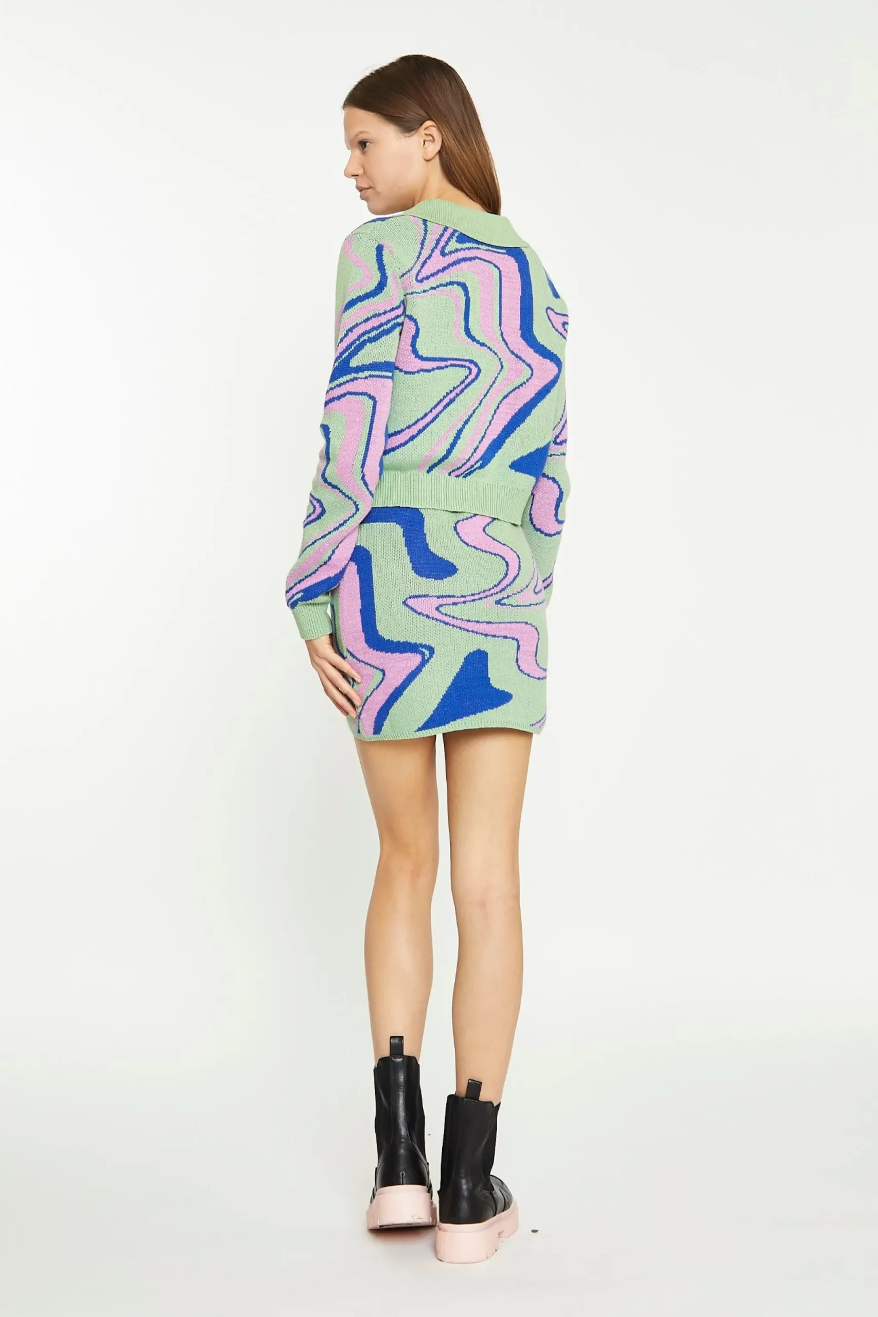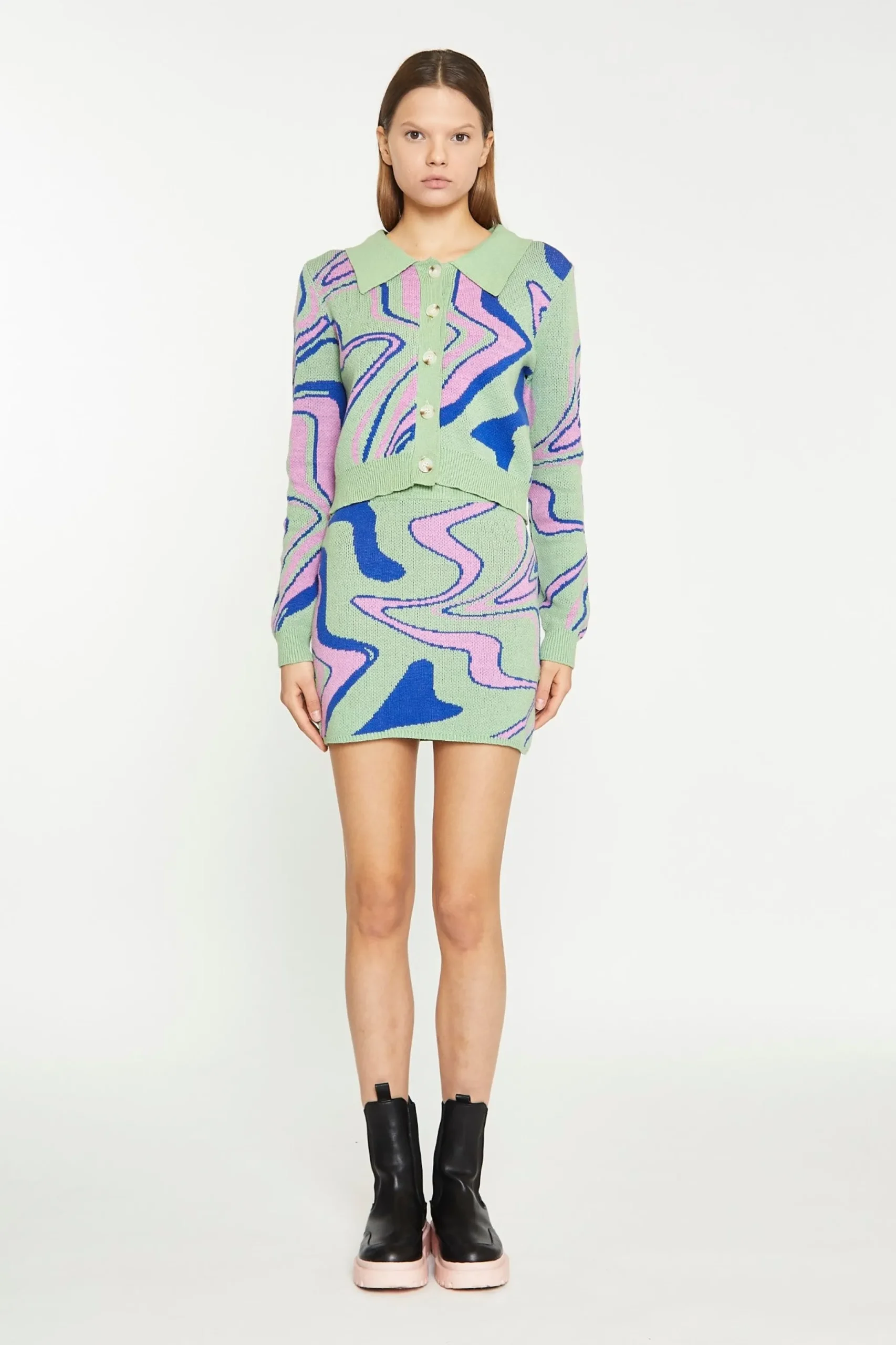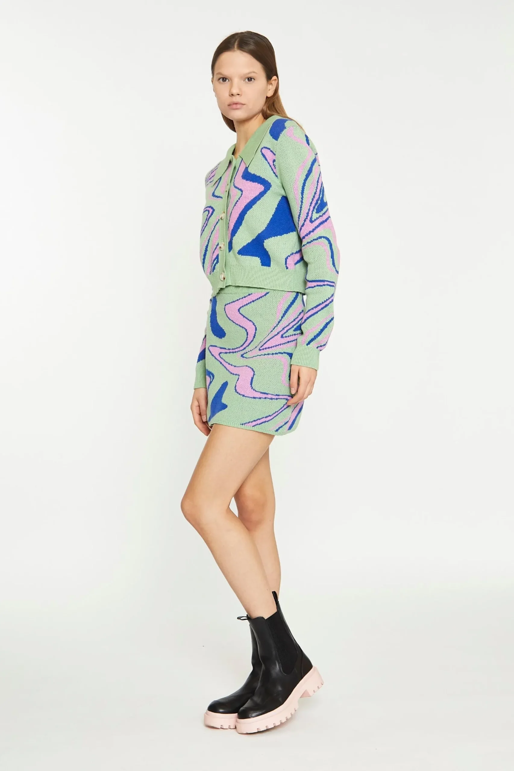 Glamorous Womens Marble Intarsia Cropped Cardigan. This statement cardigan is a print lovers dream! Featuring a button-through front and a cropped fit in a marble intarsia finish, we love this bold piece here at Glamorous. Style with our matching skirt for a relaxed but chic look.