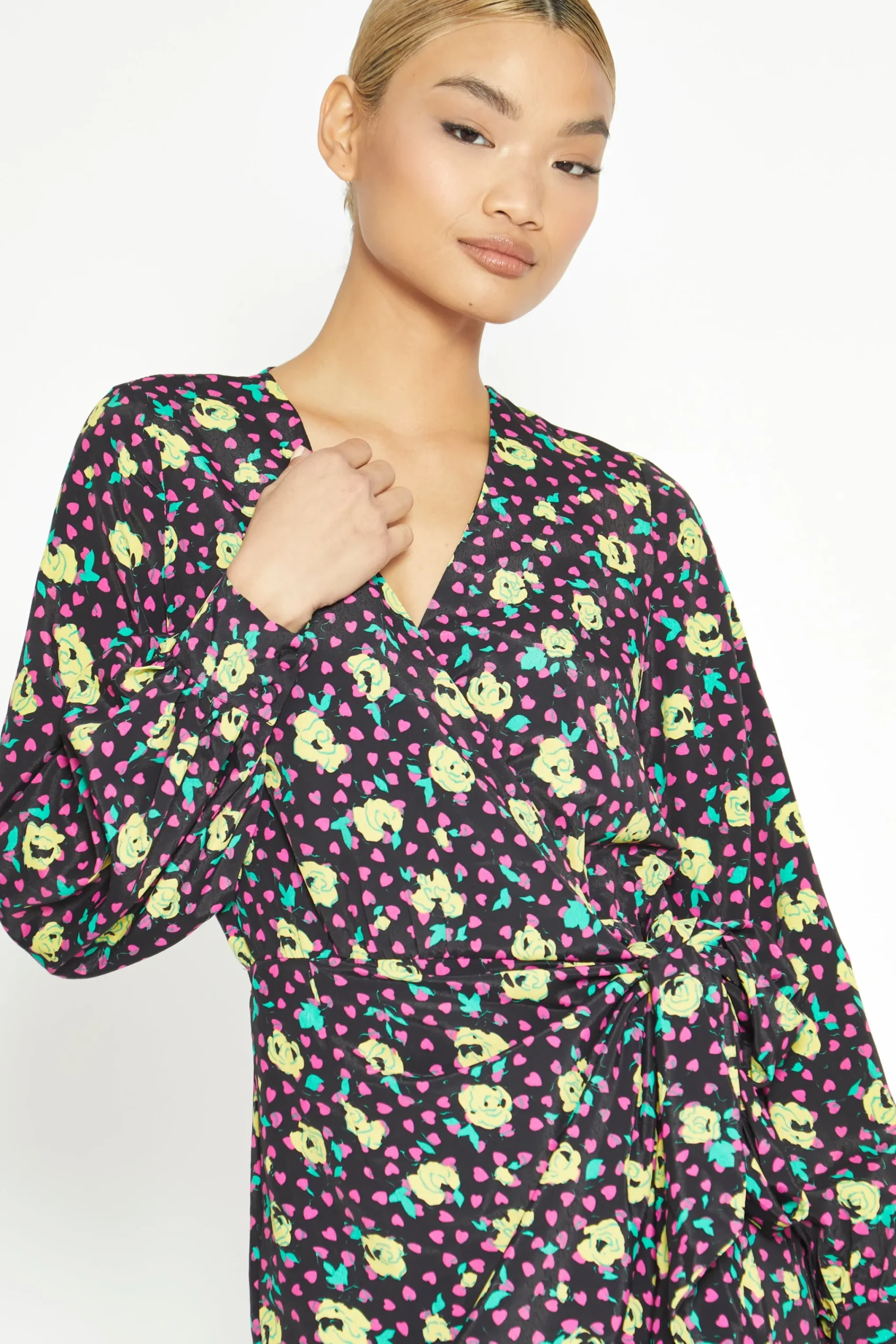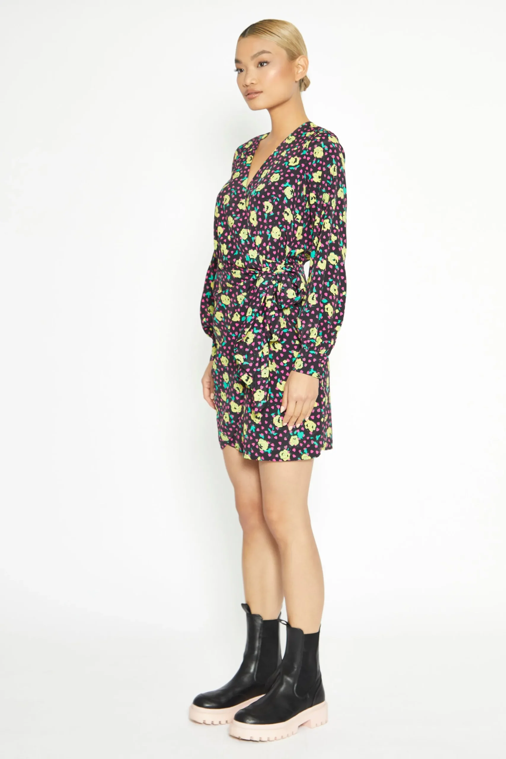 Glamorous Black Multi Rose Mini Wrap Dress. This statement piece will look great this season. Featuring long sleeves, a V-neckline and a wrap style in a bright floral print, this mini dress is the perfect way to elevate your look for Winter. Elevate the look with some strappy heels and a clutch to take it from day to night.