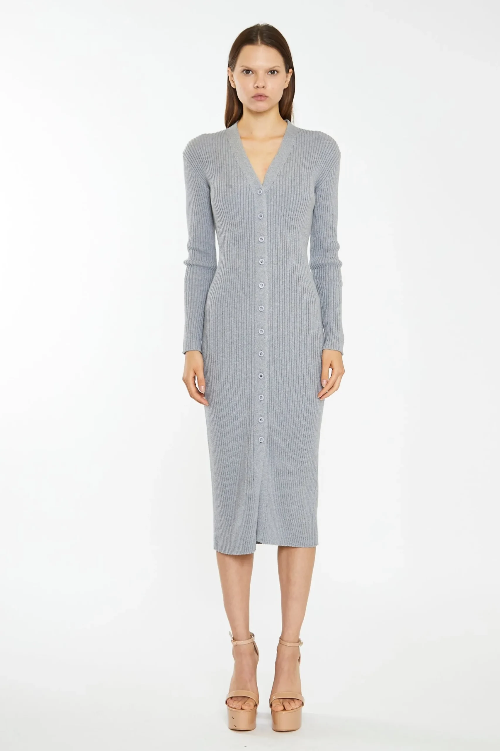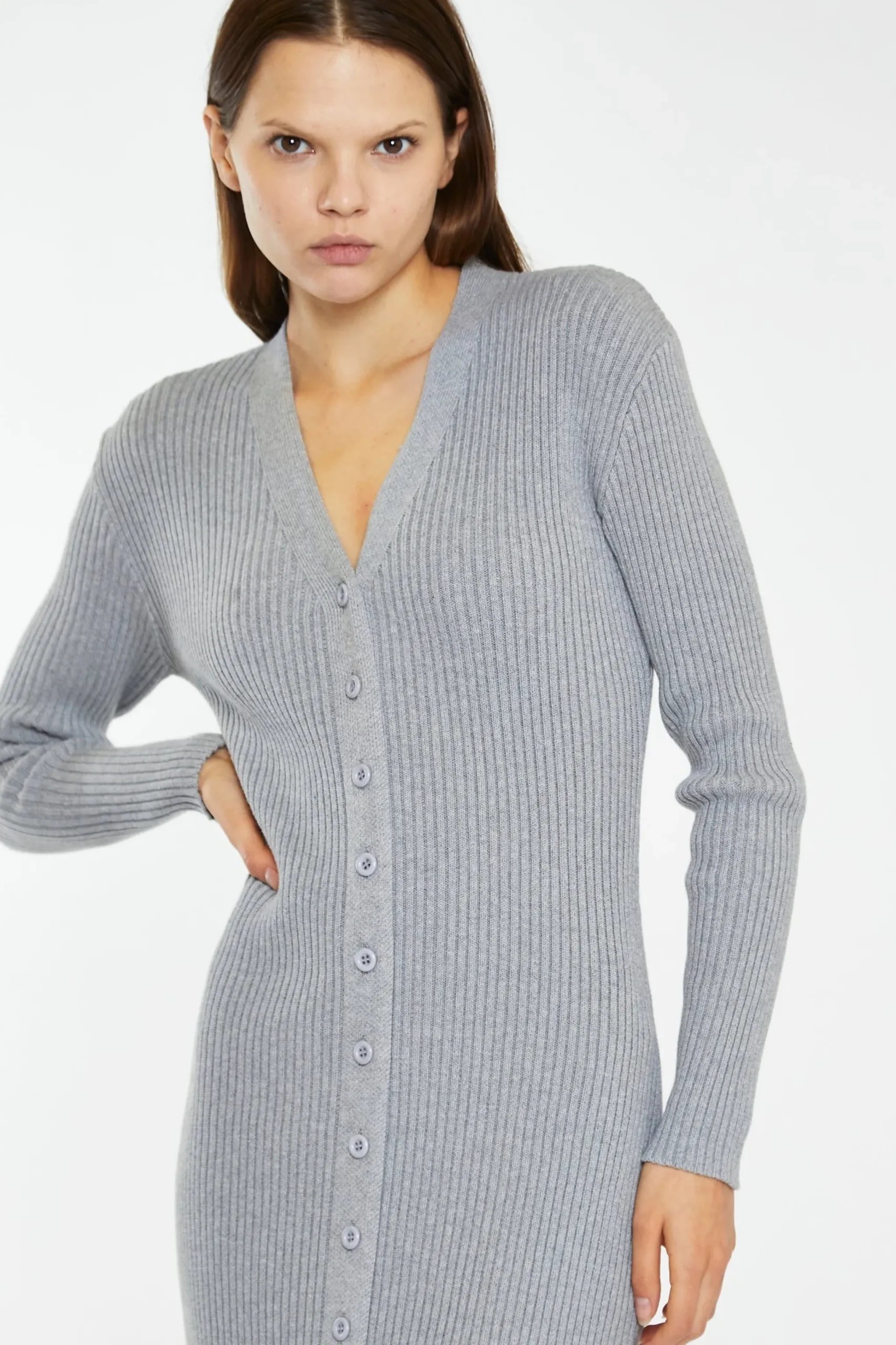 Glamorous Womens Grey-Marl Button-Down Knitted Midi-Dress. This midi dress is perfect for your wardrobe this season! Featuring long sleeves, V neckline in a skinny fit, we love this piece here at Glamorous. Dress this gorgeous piece up or down with trainers or heels, its a must have for your season wardrobe.