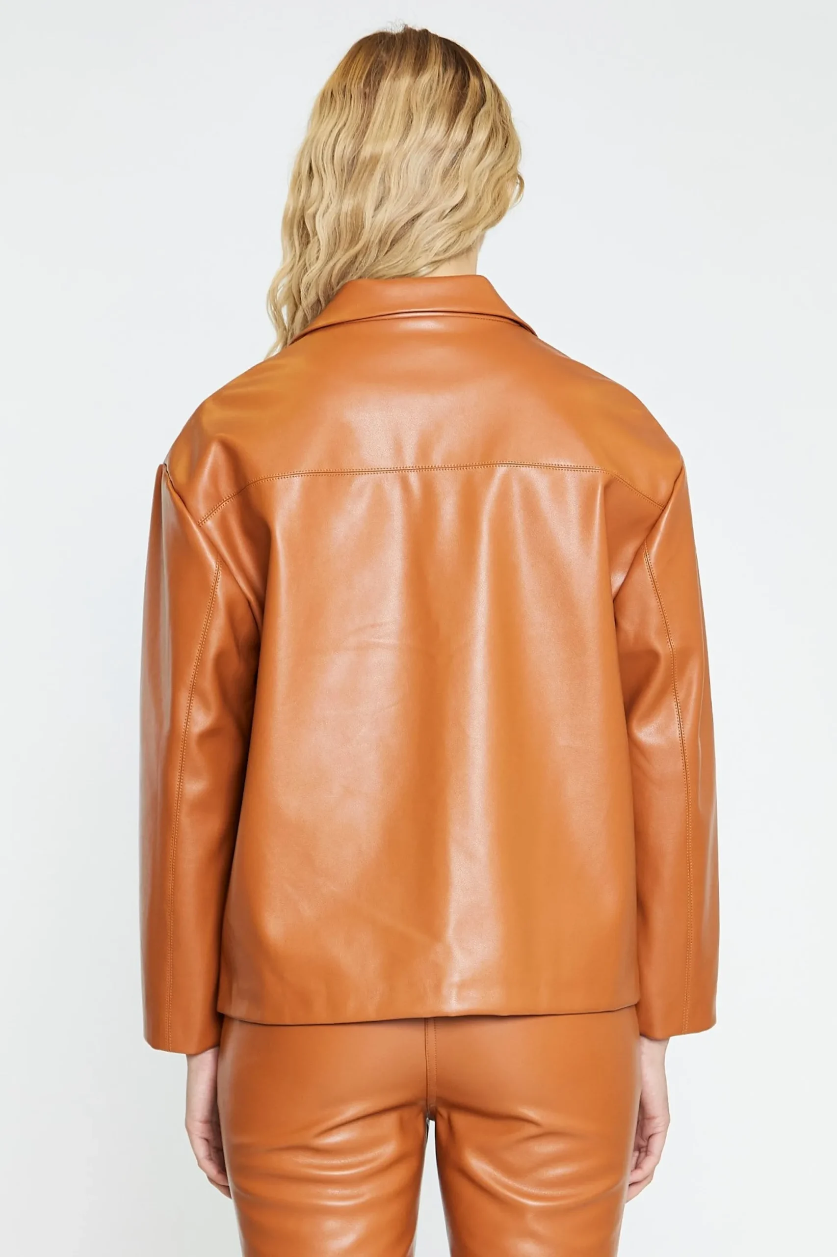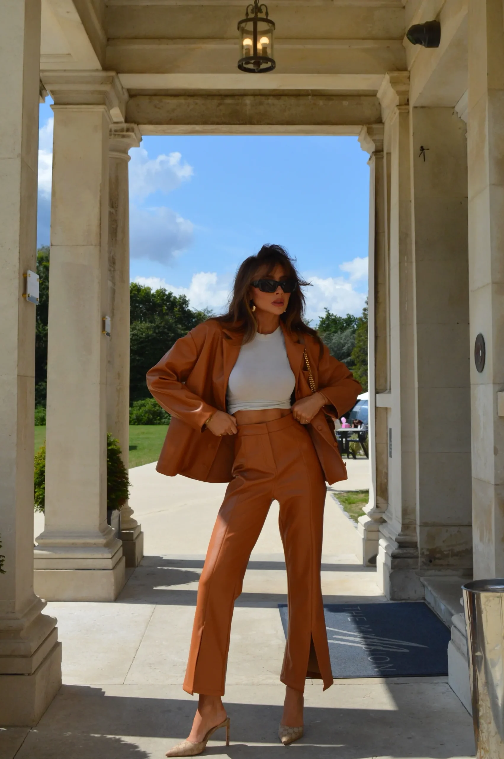 Glamorous Womens Tan PU Shirt. This PU shirt is an update twist on a timeless piece. Featuring classic shirt details like a lapel collar and patch pocket, crafted in on trend PU fabric, this shirt is the perfect way to update your autumn wardrobe. Style with the matching trousers for a sleek look.