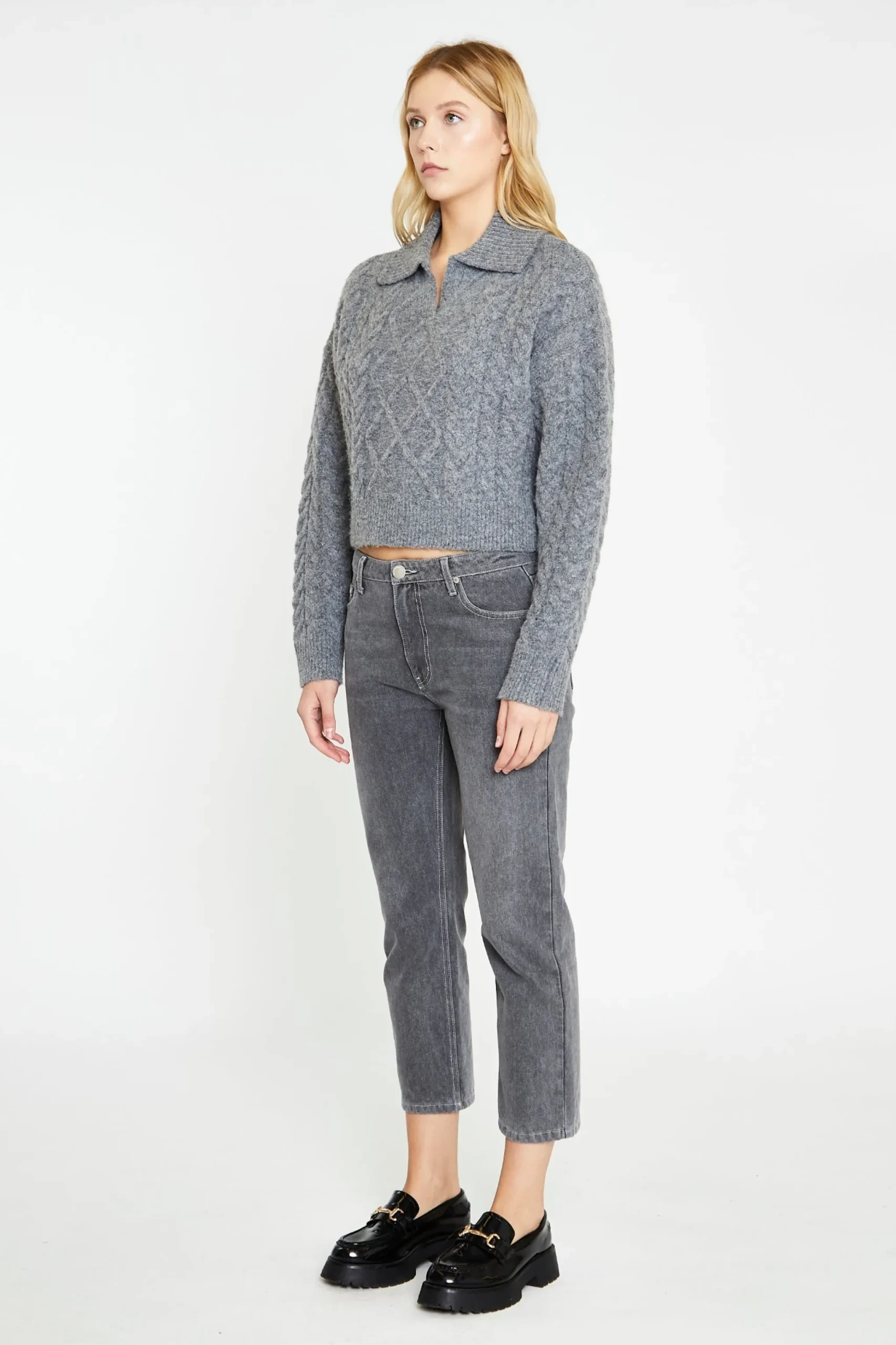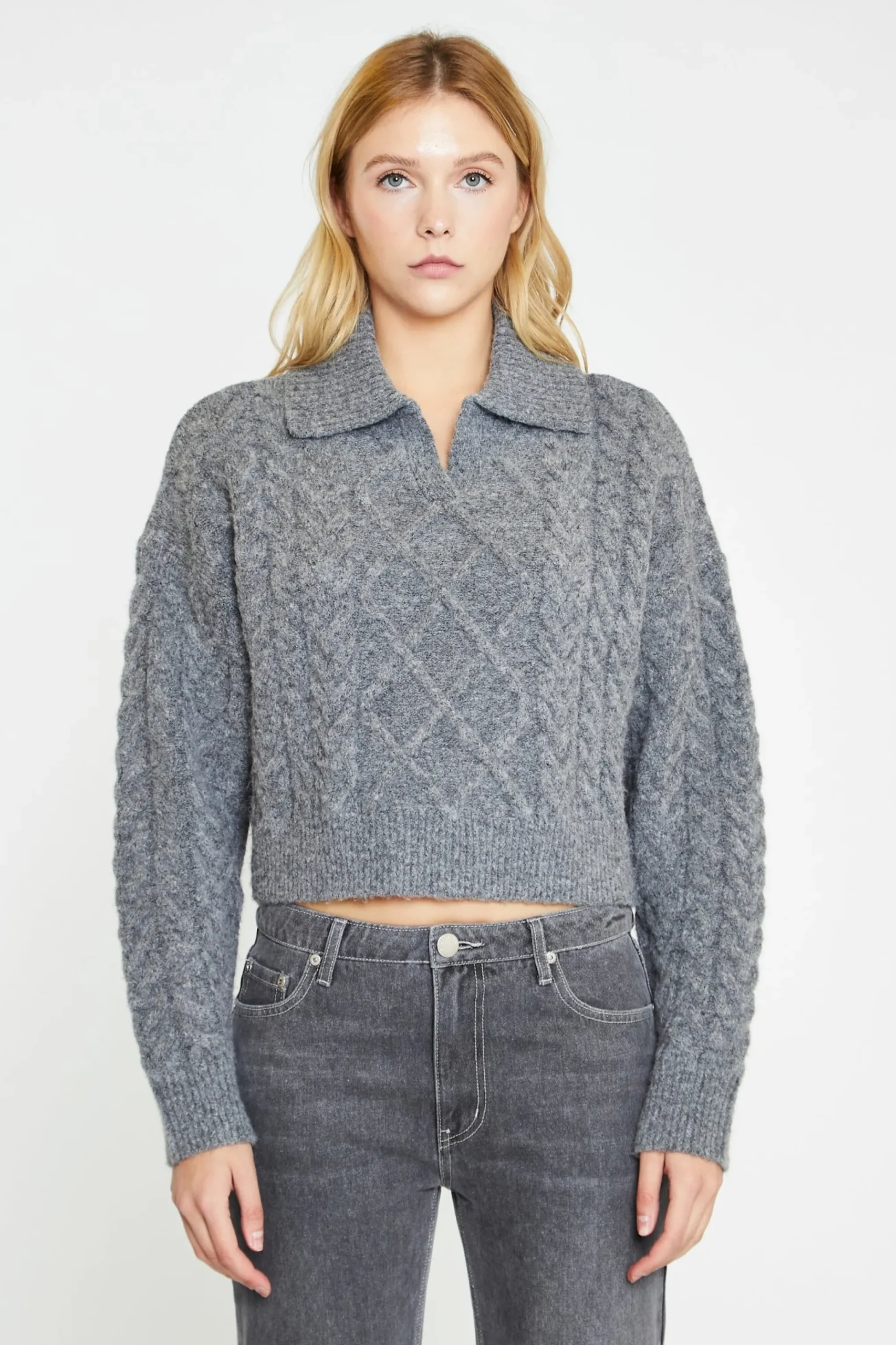 Glamorous Womens Dark-Grey Marl Collared Cable Knit Jumper. A perfect pick for when you need a cozy layering piece, this Dark-Grey Marl Collared Cable Knit Jumper features a rib knit collar, cuffs, and hem, plus classic cable knit detailing for a timelessly stylish look. Pair with some black straight leg jeans for a comfortable stylish look!