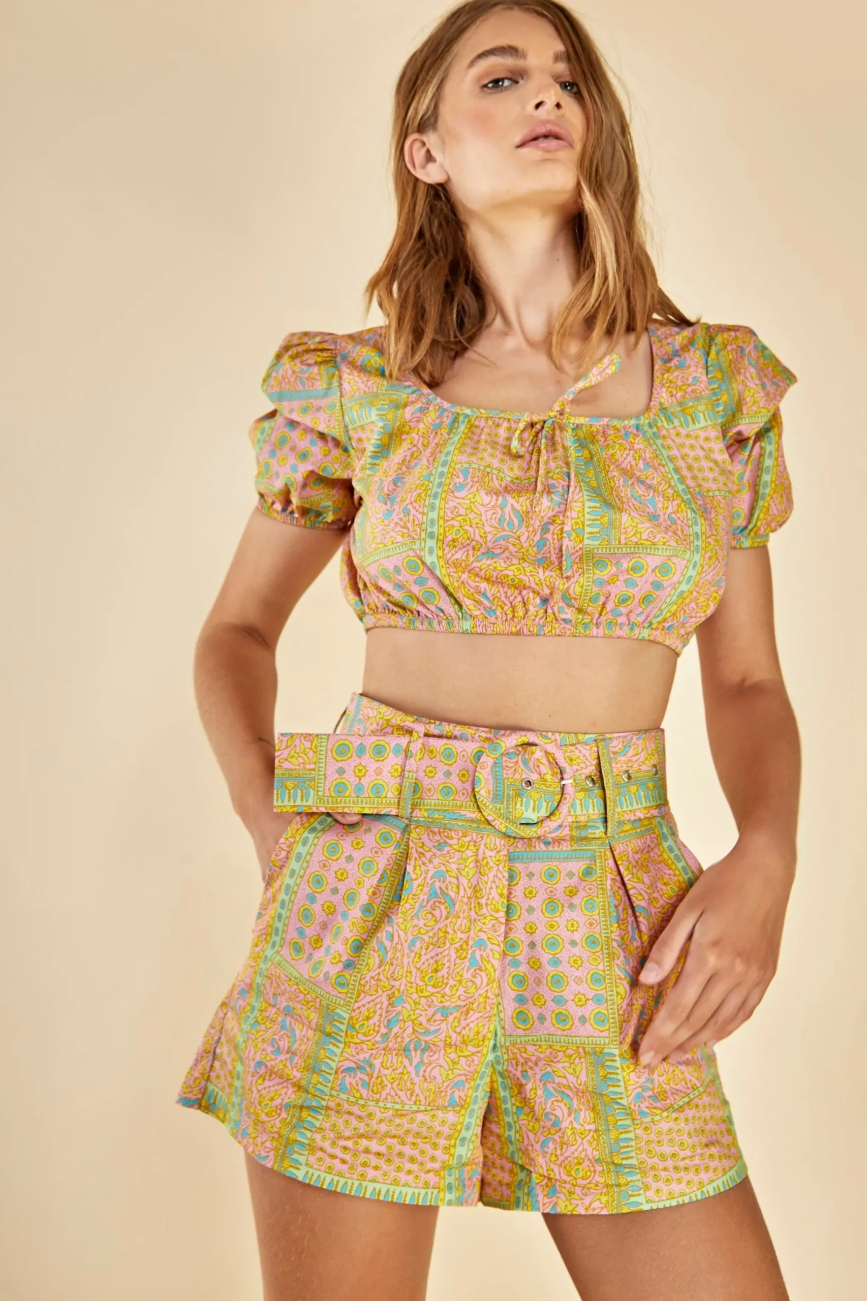 Glamorous Care Pink Neon Paisley Belted Shorts. We love these cute belted shorts here at Glamorous! Pair with the matching top for a sustainable co-ord moment. This fashion forward look will have you turning heads wherever you go.