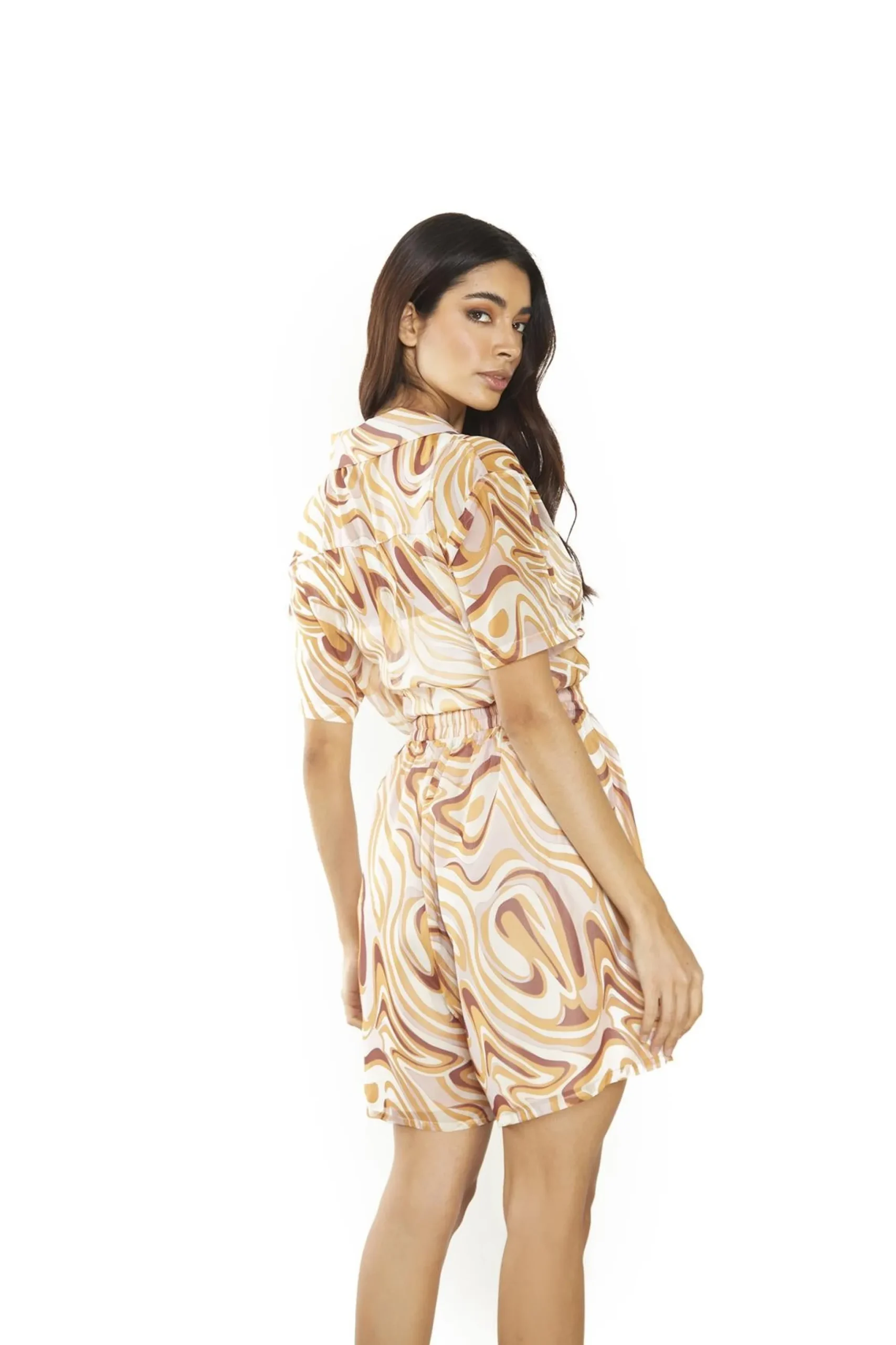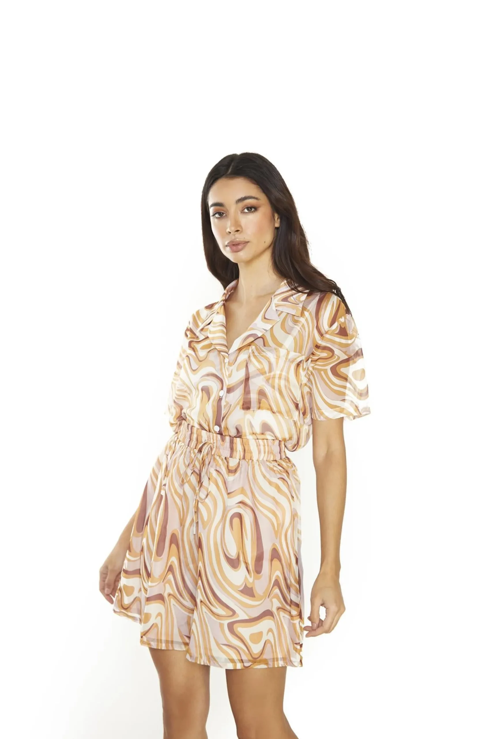 Glamorous Women’s Retro Marble High-Waisted Loose-Shorts. These retro marble high-waisted shorts are a fun and comfortable addition to your summer wardrobe. The loose fit keeps you cool and relaxed, perfect for warm days or casual outings. With an elasticated waistband, they offer both style and comfort, allowing for easy movement and a snug fit. The high-waisted design flatters your figure and pairs well with crop tops or tucked-in tees. The unique marble pattern adds a touch of vintage flair, making these shorts stand out from the crowd. For a coordinated look, team them with the matching top for an effortless outfit. These versatile shorts work great for beach days, picnics, or just lounging at home. Dress them up with sandals and statement jewellery, or keep it casual with sneakers and a denim jacket. Easy to wear and style, these shorts are sure to become a go-to piece in your summer rotation.