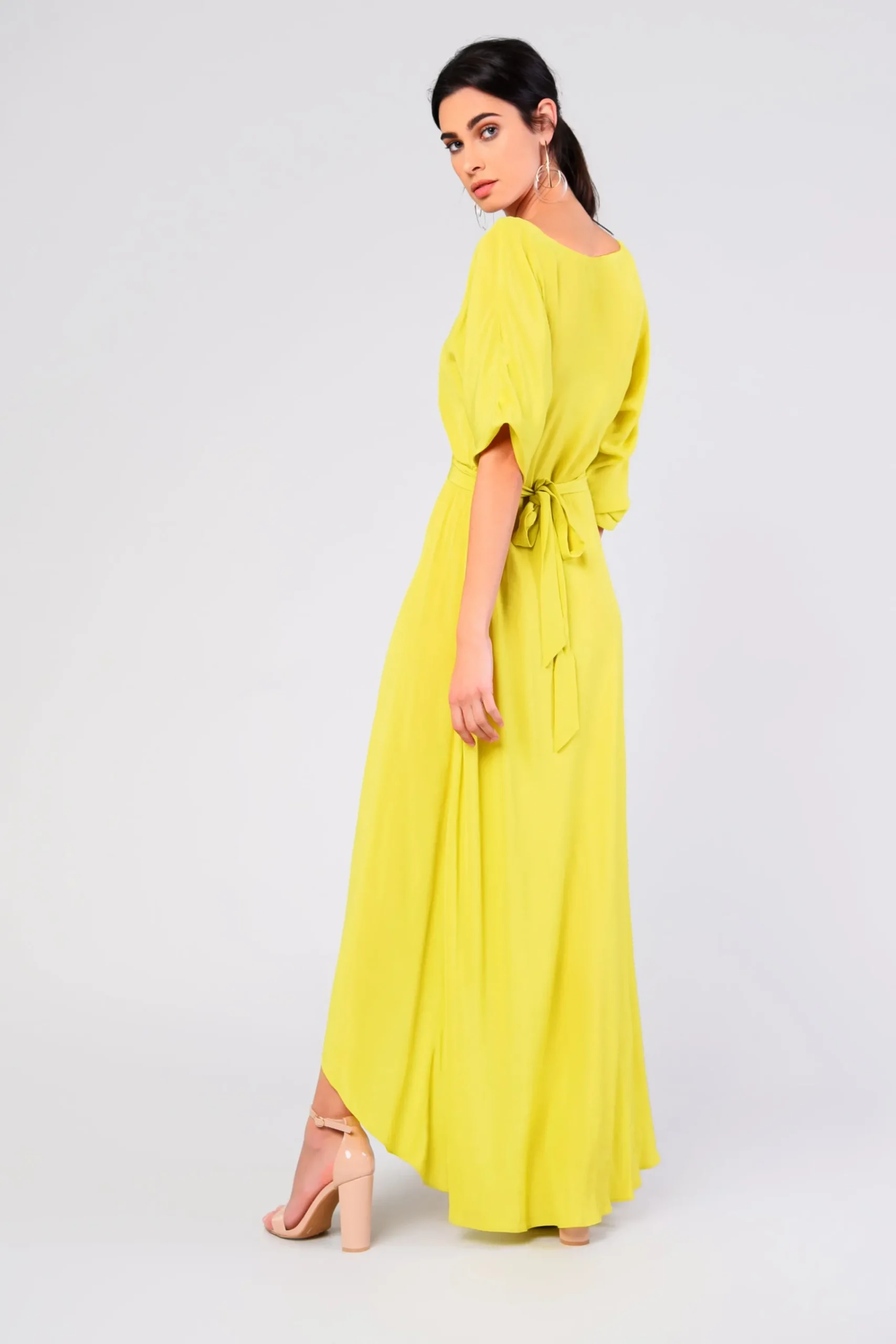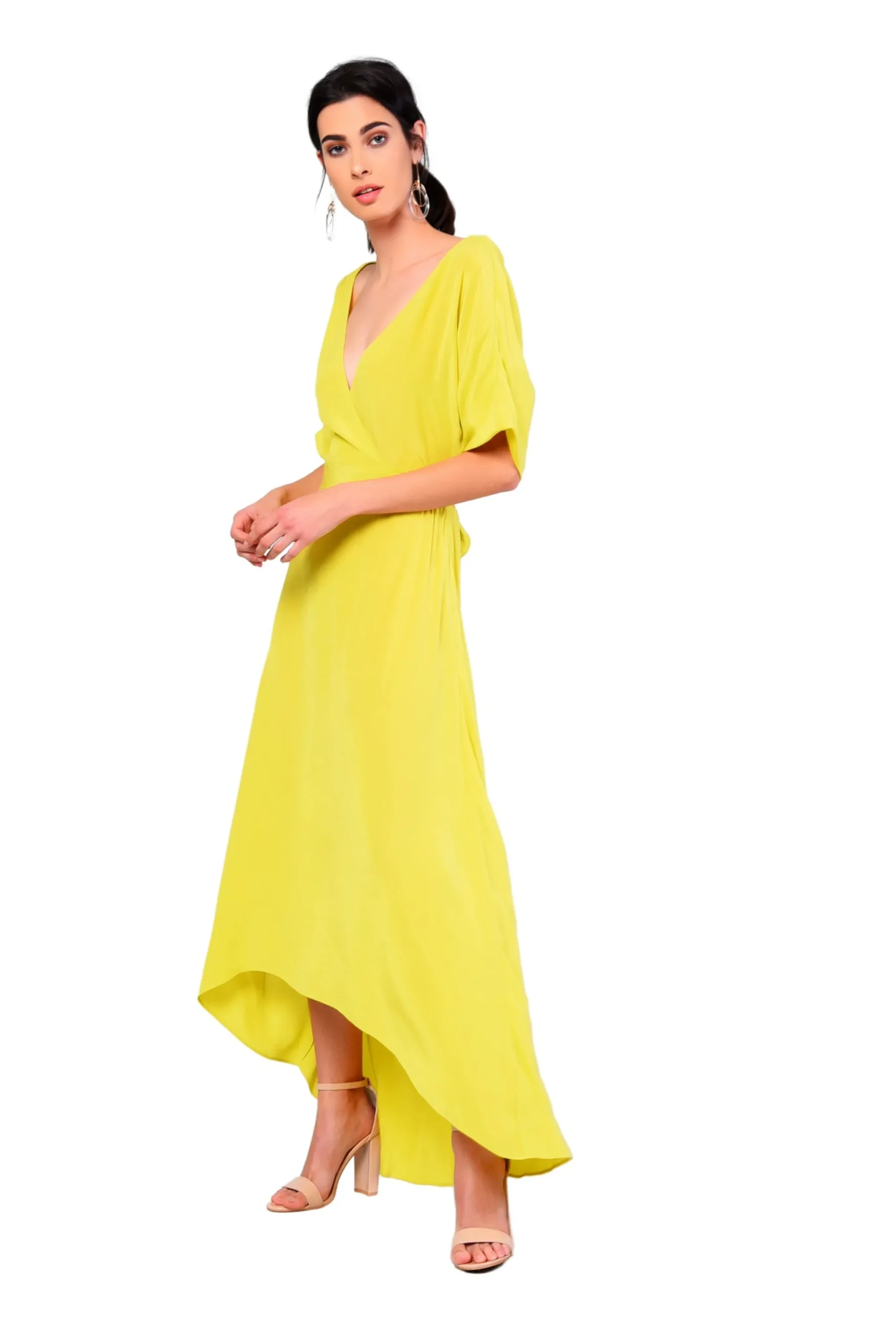 Glamorous Womens Lime V- Neck Wrap Midi Dress. This stunning piece is destined for your wardrobe this Autumn season. Featuring a wrap front and on trend colour. Style this with some strappy heels for a chic fashion forward look.